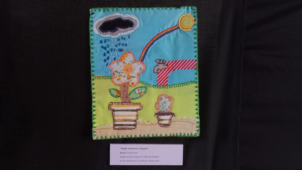“En este taller –añade- logramos rápidamente generar cariño, confianza y respeto, lo que motivó que pudiéramos compartir nuestras experiencias de vida, nuestras experiencias políticas, pero -por sobre todo- logramos un gran compromiso por este “pequeño gran taller”. Vivimos el taller con gran alegría por el logro de cada puntada, por el logro de expresar con telas y lanas sus ideas en este trabajo de expresión libre”.